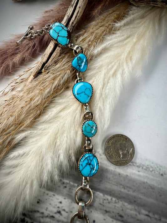 Stunning 5-Stone Prince Turquoise Link Bracelet