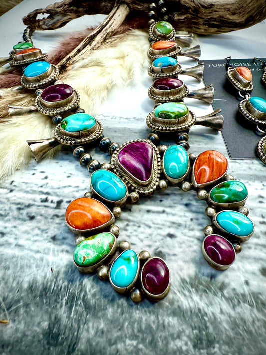 Timothy Yazzie Multi-Stone Squash Blossom Necklace & Earring Set