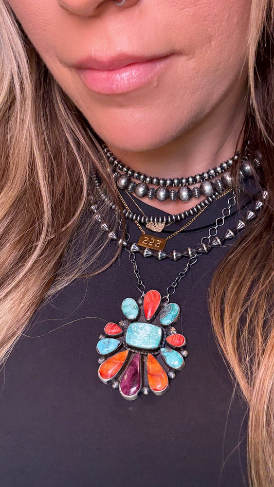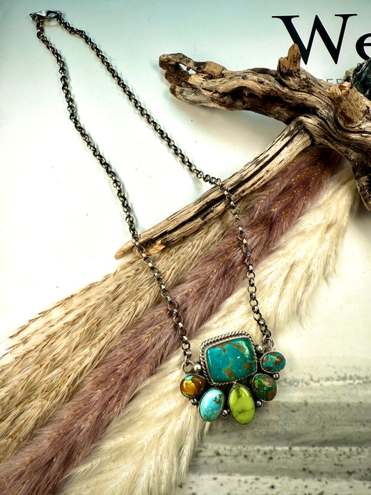 Mixed Mine & Sonoran Gold Turquoise Cluster Necklace by Emer Thompson
