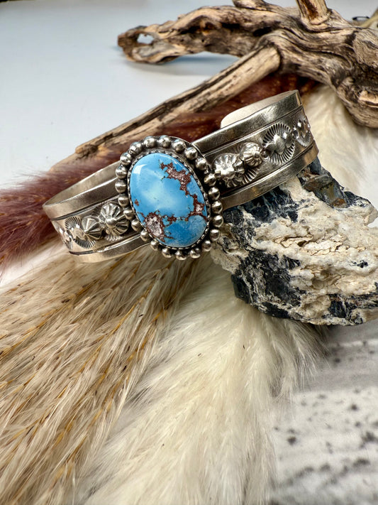 Gorgeous Golden Hills Turquoise Cuff – Handmade by Navajo Silversmith Jeff Largo