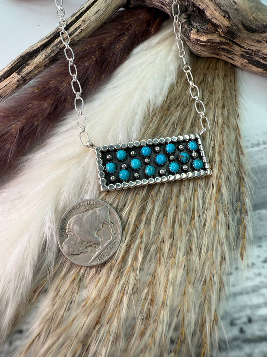 16" Classic Kenny Lonjose Turquoise Snake Eye Dot Bar Necklace