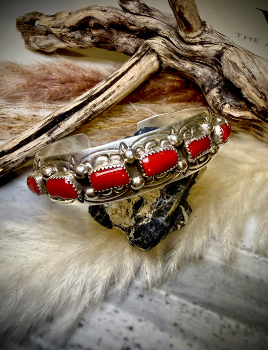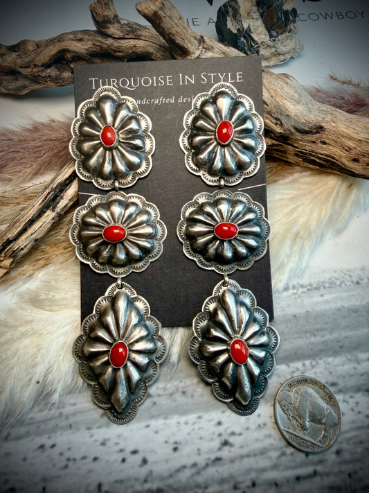 Triple Dangle Rita Lee Red Coral Concho Earrings