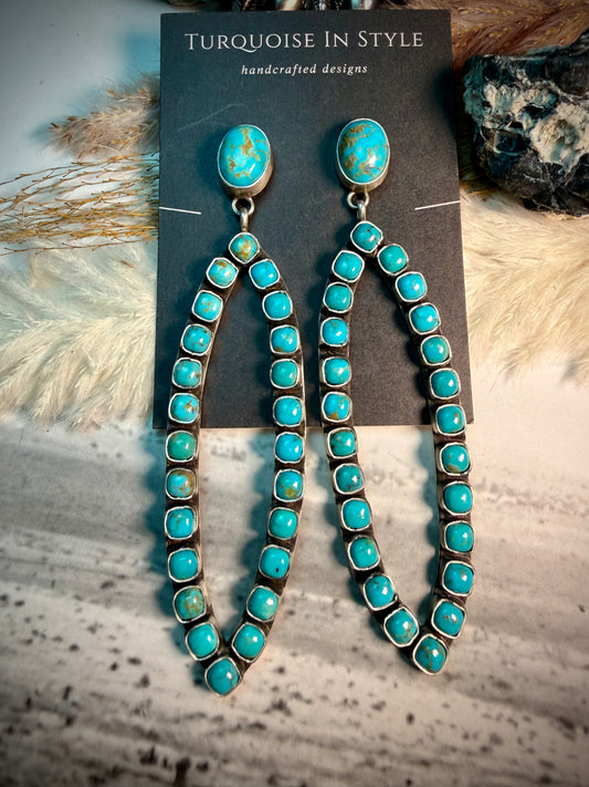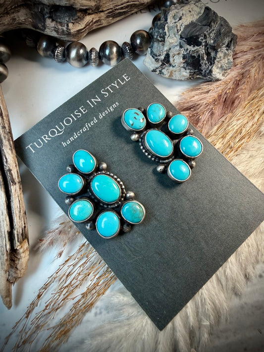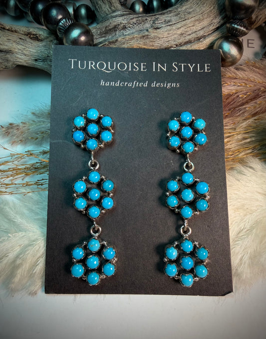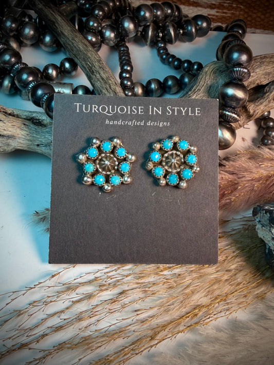 Sleeping Beauty Turquoise Needlepoint and Petit Point Zuni Cluster Earrings by Merlinda Chavez