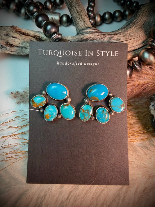 Rita Lee Triple Dangle Concho Earrings with Blue Turquoise