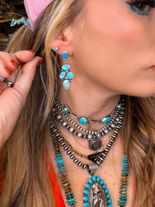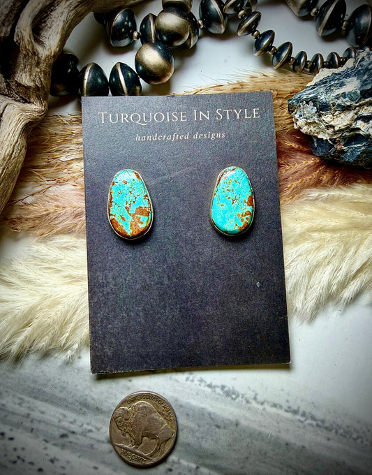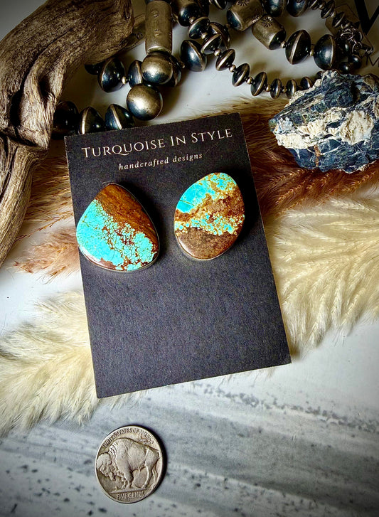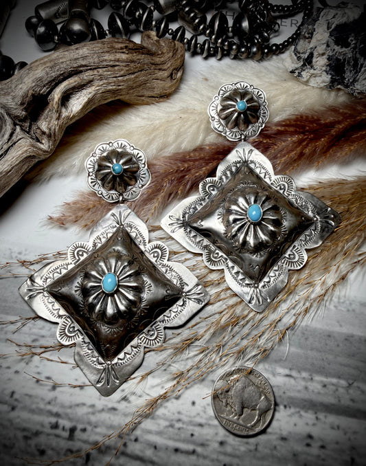 Rita Lee Large Diamond Shaped Turquoise Concho Earrings