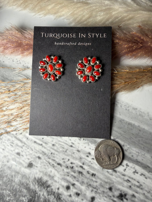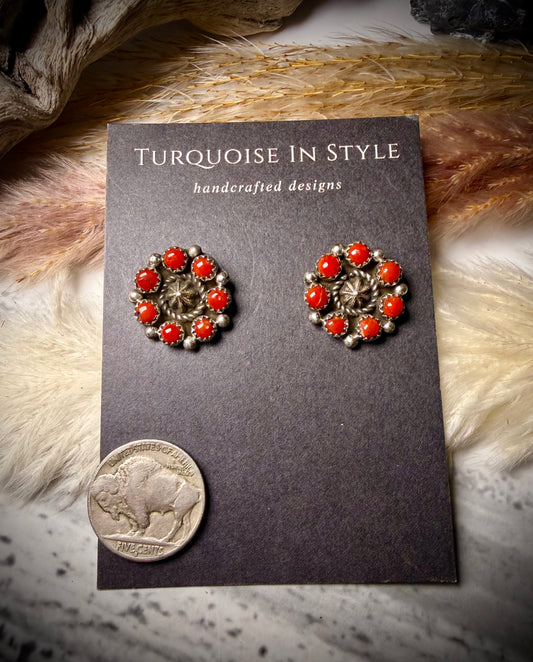 Red Coral Concho Cluster Earring Fairren Begay