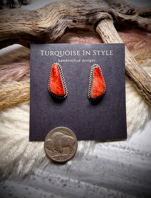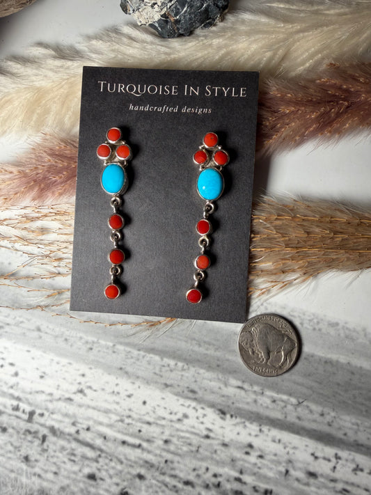 Red Coral and Turquoise Stud Dangle