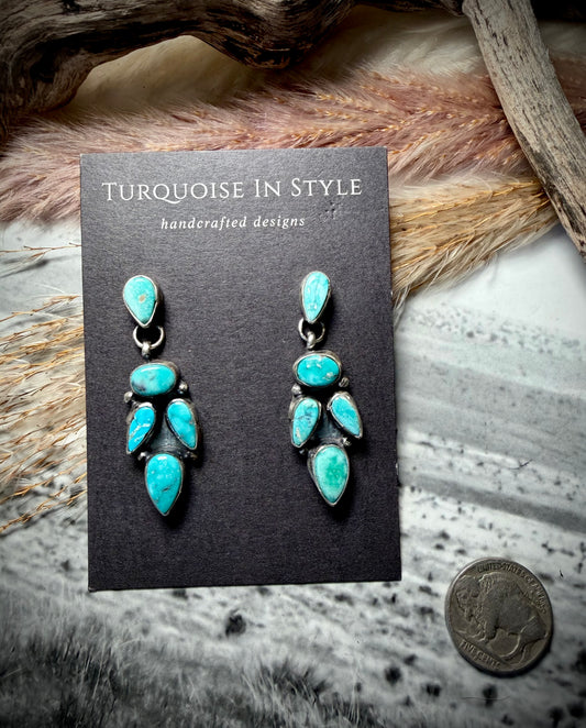 Small Three Stone Turquoise Earrings by Sylvia Chee