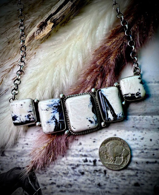 Alex's White Buffalo 5-Stone Rectangle & Square Bar Necklace by Patrick Yazzie