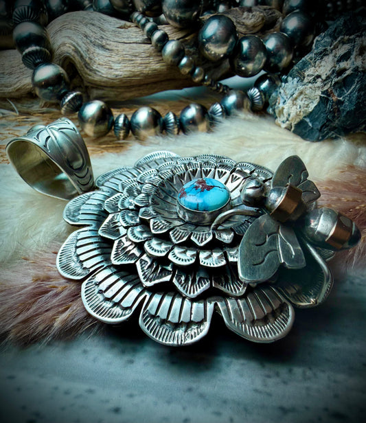 Golden Hills Sterling Silver Flower and Bee Pendant
