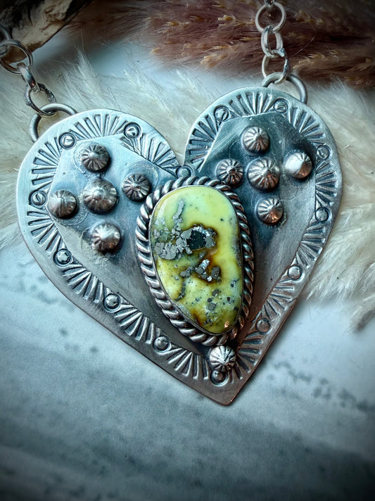 Native Made Stamped Heart with Turquoise