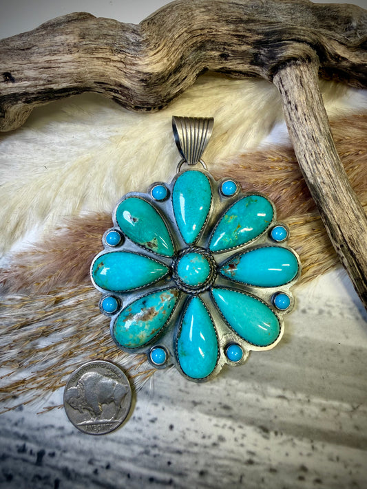 Huge Thunder Creek Turquoise Cluster Pendant