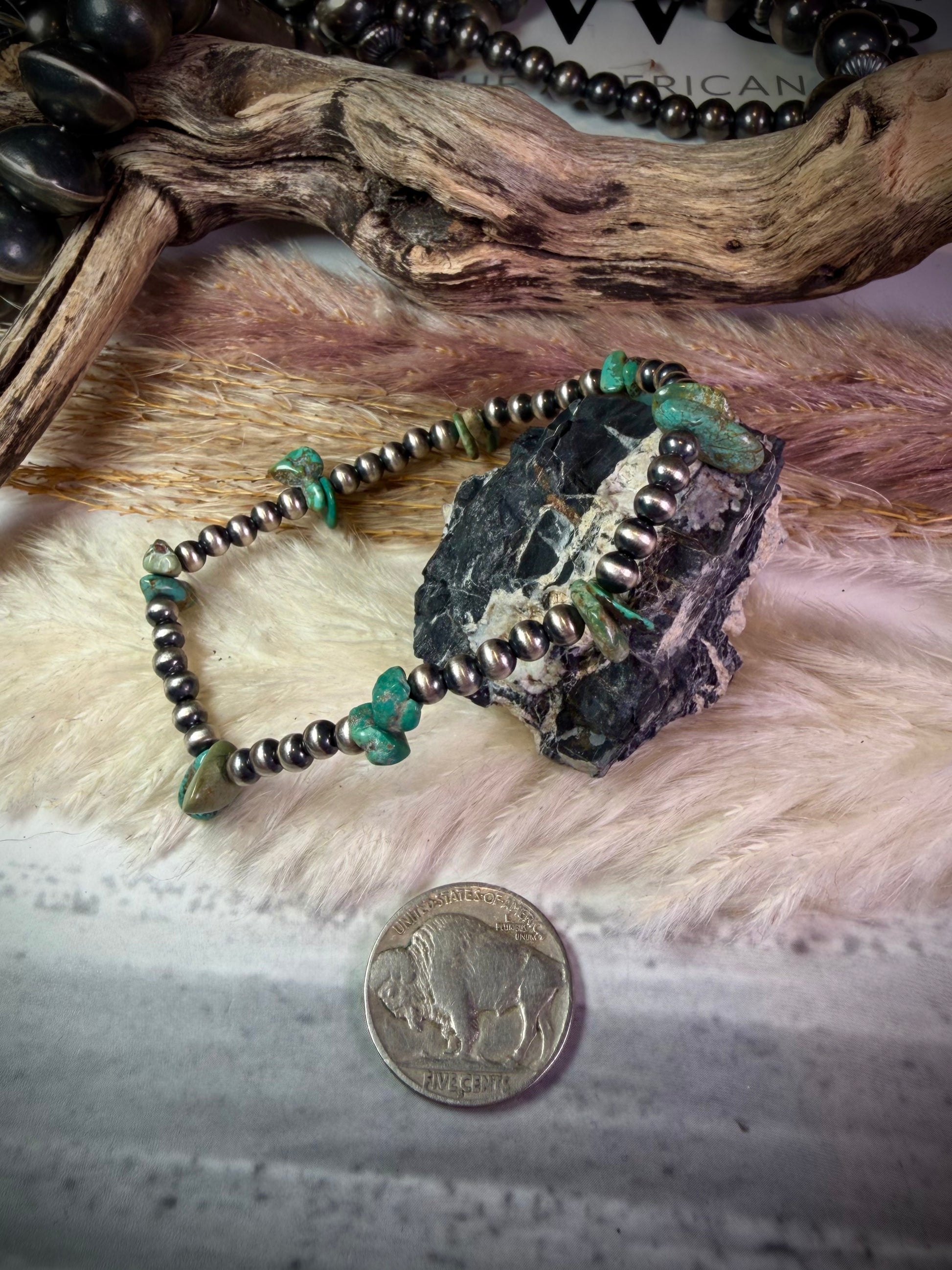 4 mm Sterling Pearl & Green Turquoise Stretch Bracelets