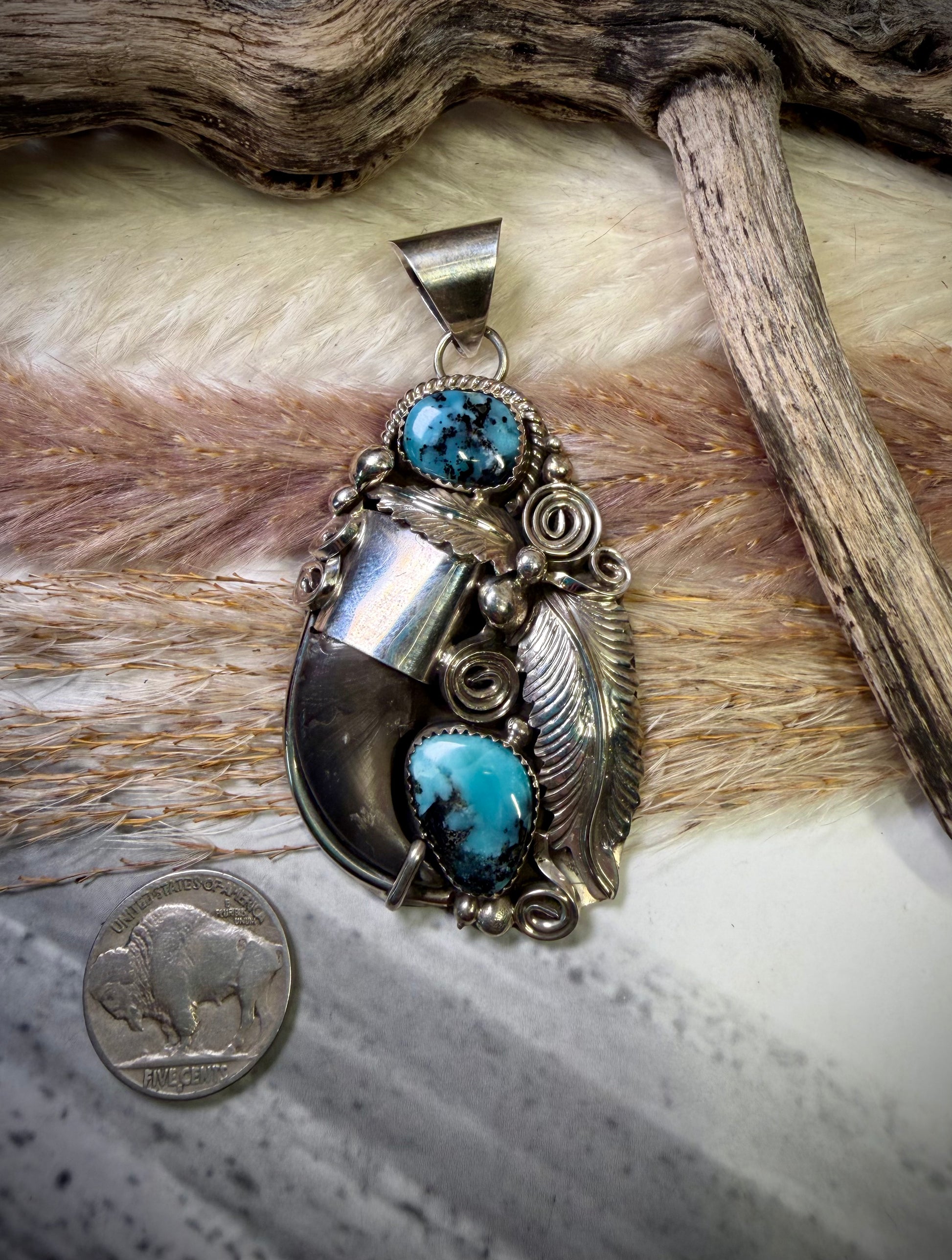 - Kingman Turquoise & Genuine Bear Claw