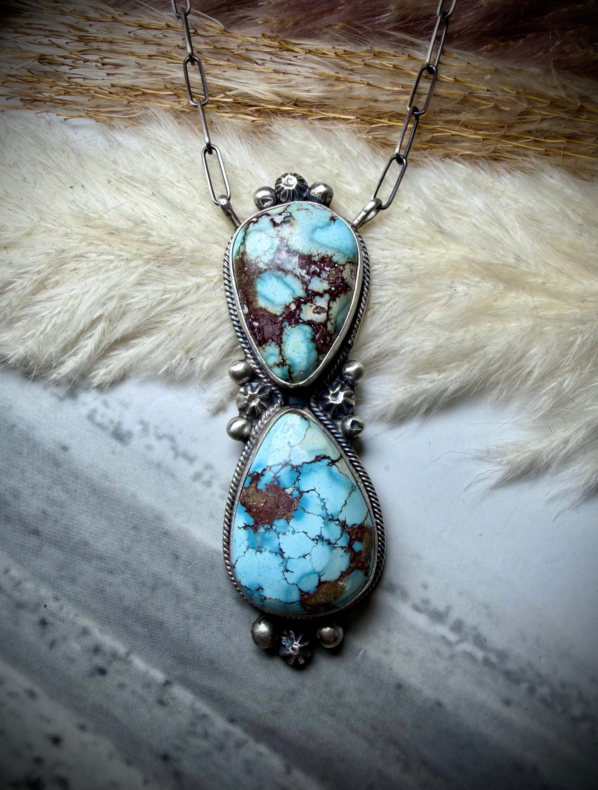 Blue Horizon Turquoise, Two Stone Pendant Necklace by Danny Henio