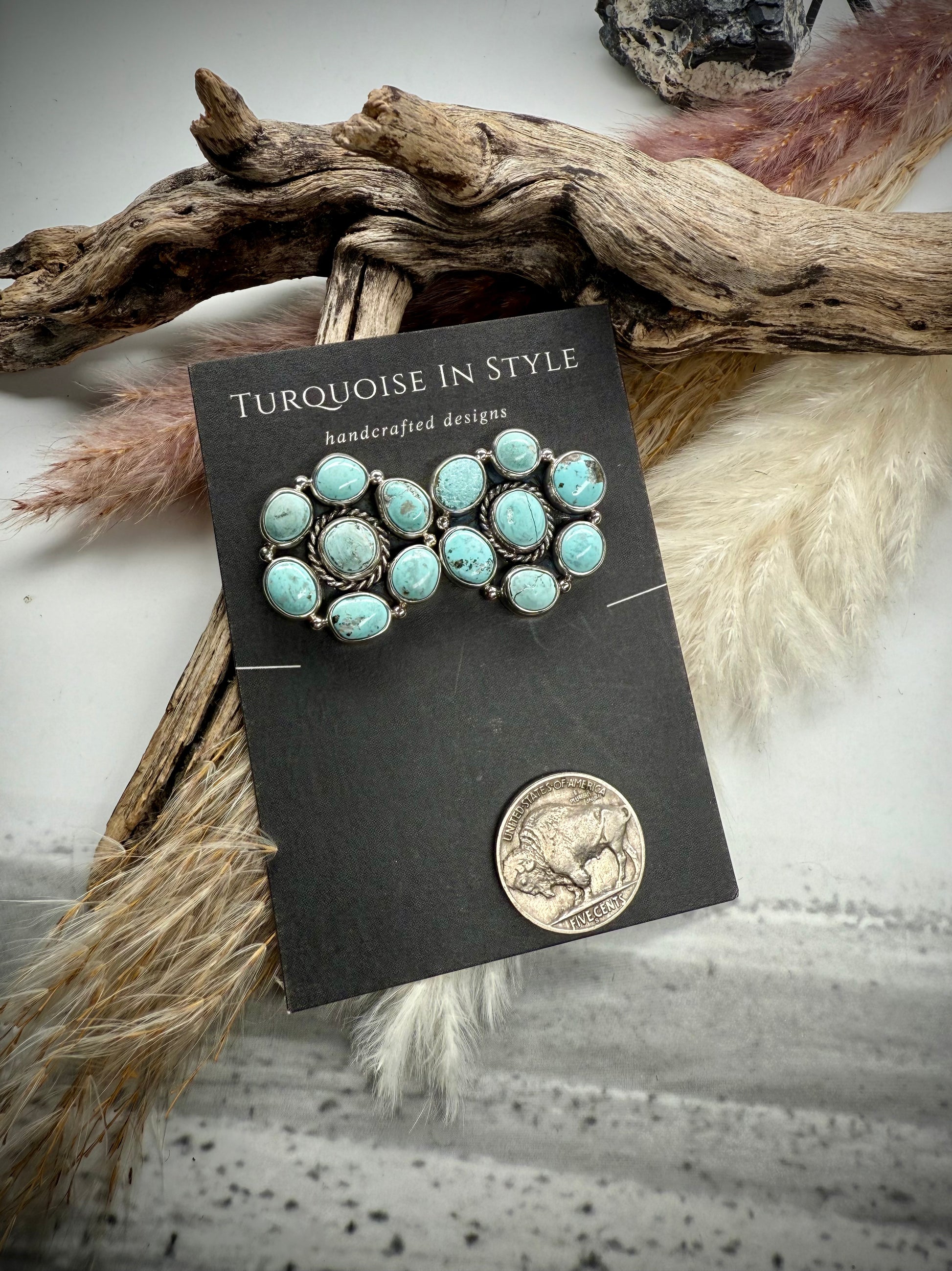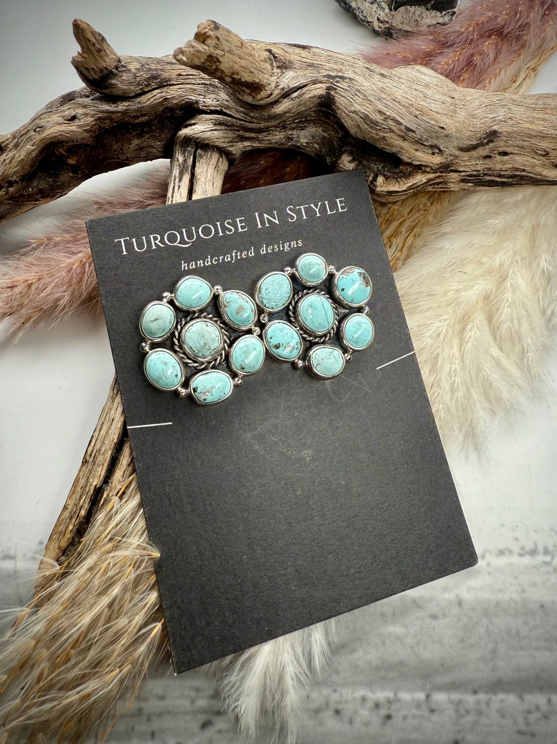 From the Dry Creek Vault — a final glimpse of something truly rare. These handmade sterling silver cluster earrings feature natural Dry Creek turquoise from a long-closed mine. Pieces this special are few and far between, and we never know if we’ll ever find more.