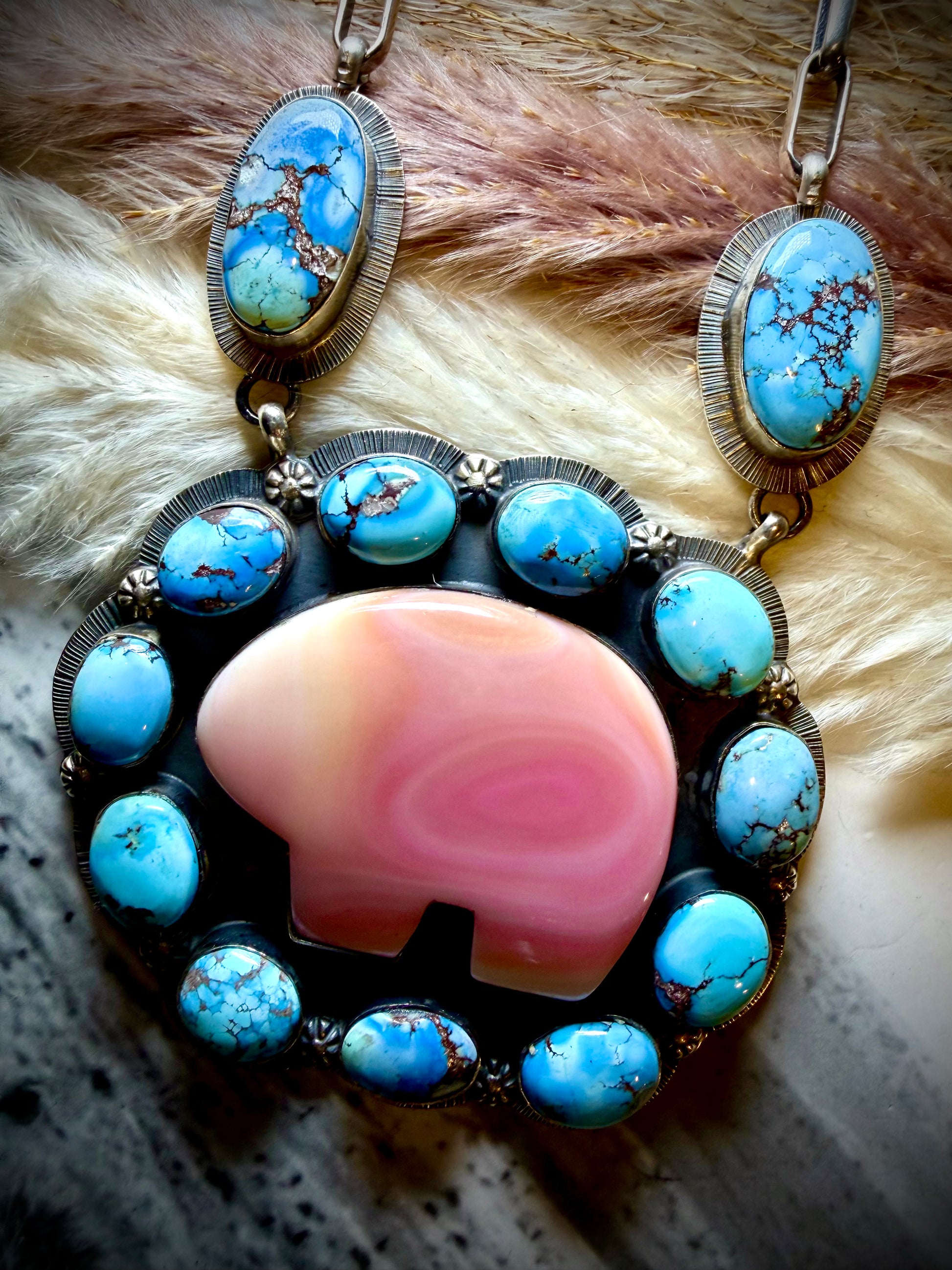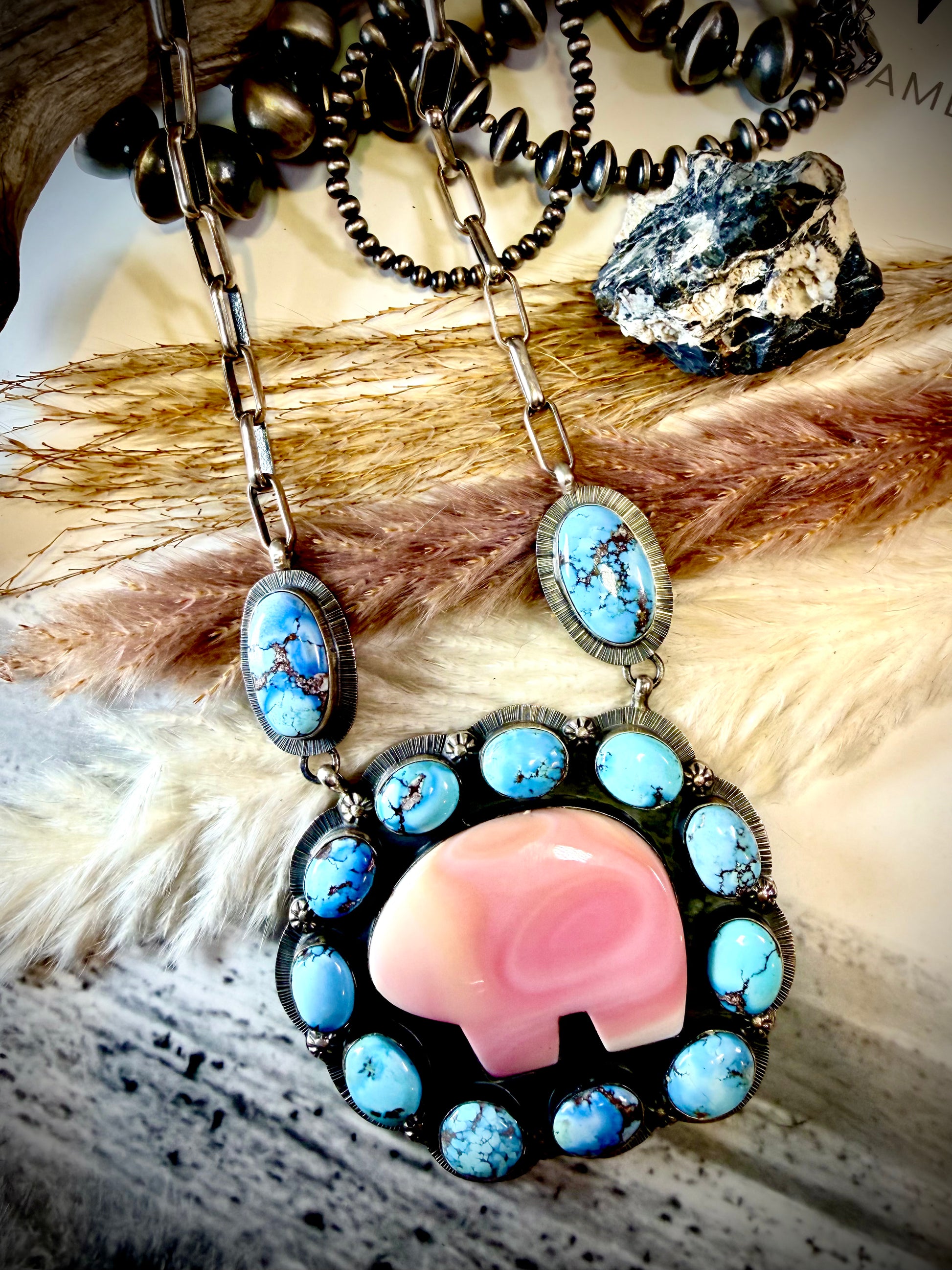 - Golden Hills Turquoise & Pink Conch Shell set in solid Sterling Silver