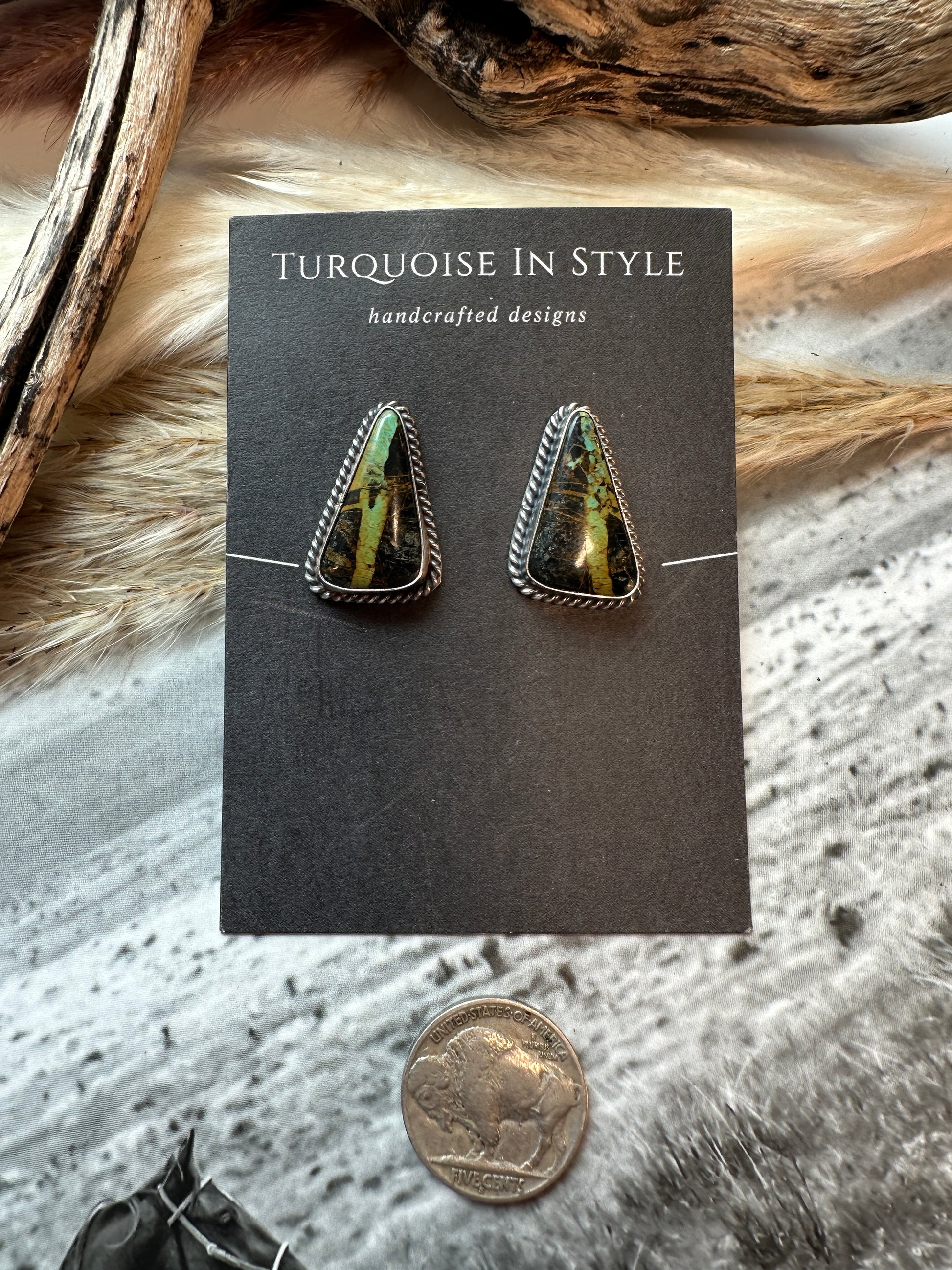 Sterling silver, Native made. Post is located at the top, these measure about 1" long.