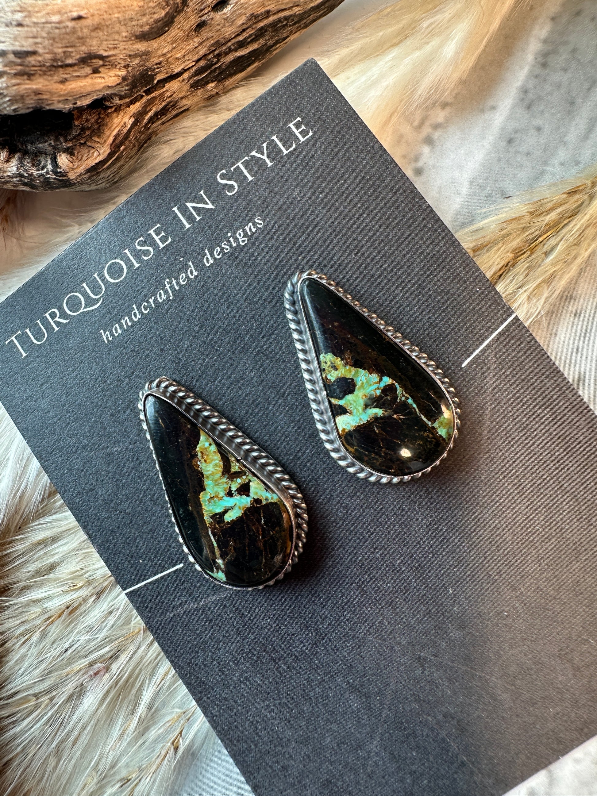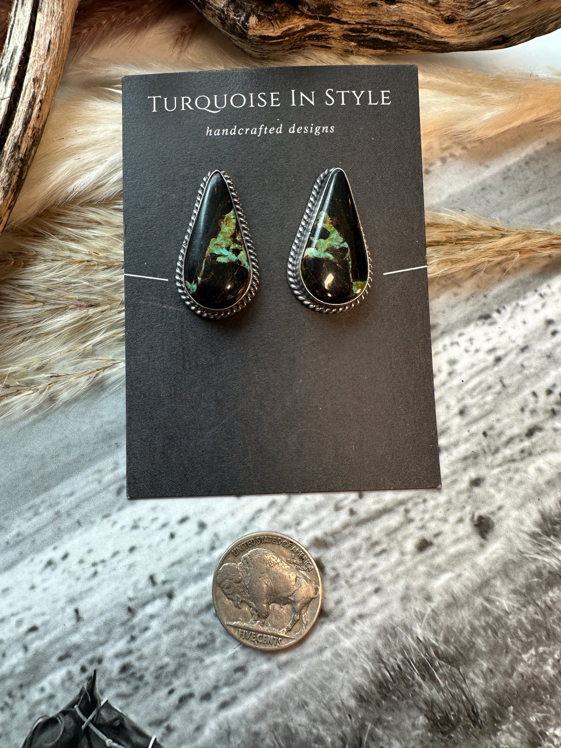 Sterling silver, Native made. Post is located at the top, these measure about 1 1/4" long.