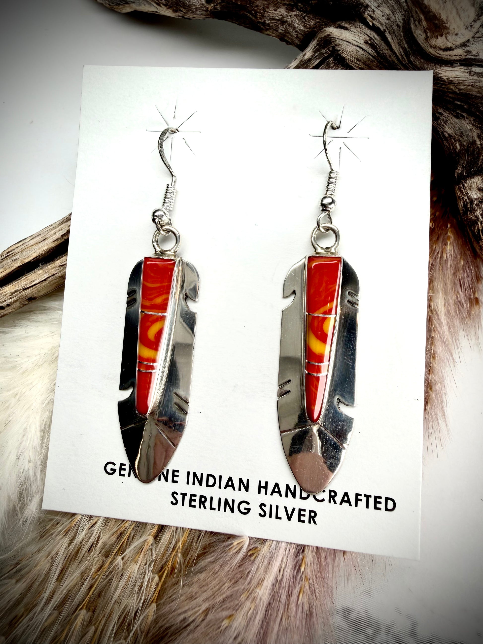 Handcrafted by Navajo artist Mary Yazzie, these sterling silver dangles showcase striking Rosarita stones — known for their deep, glassy red hue. Lightweight with just the right amount of movement, they’re bold yet timeless, making them a standout piece for any Southwestern jewelry collection.