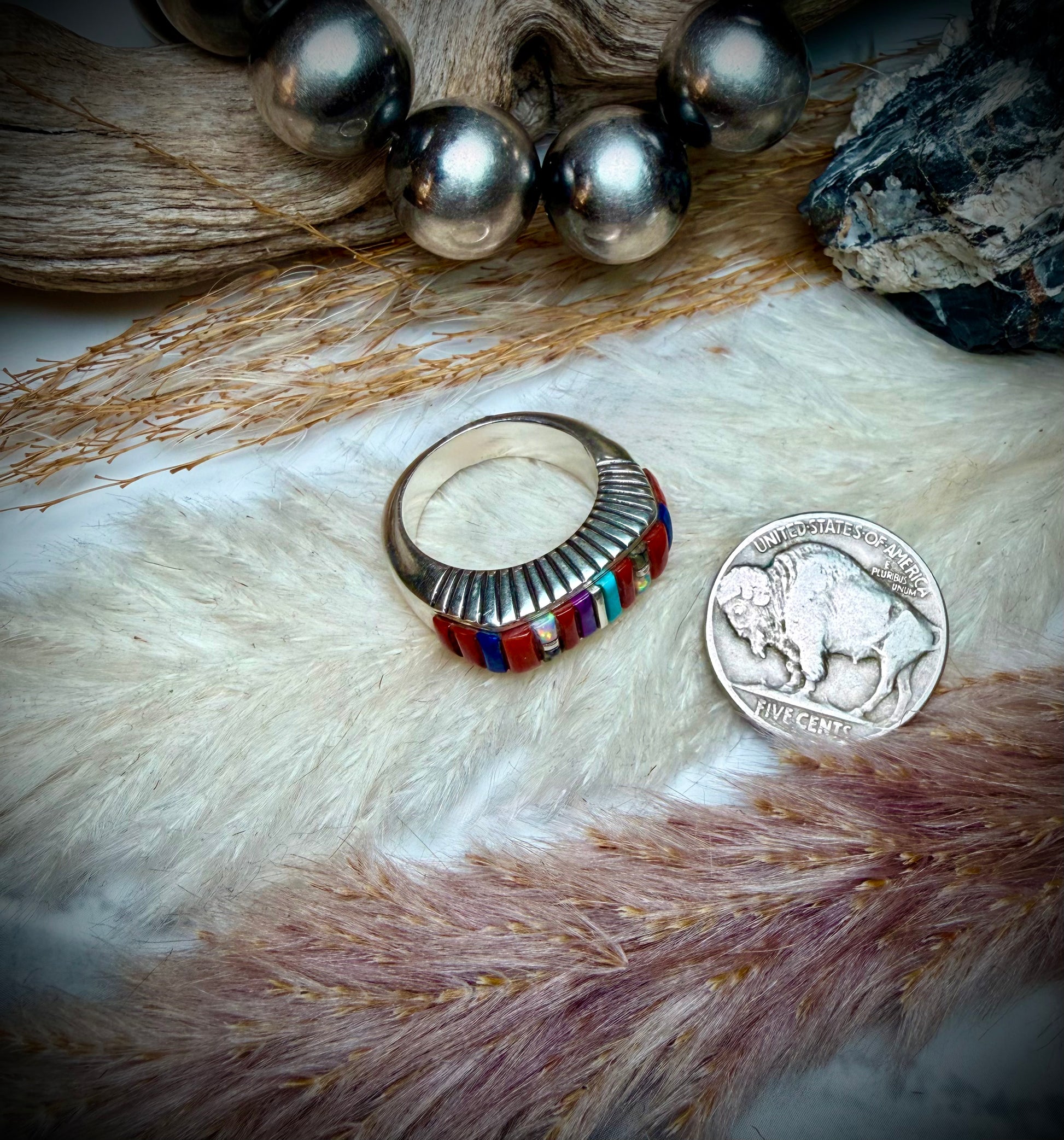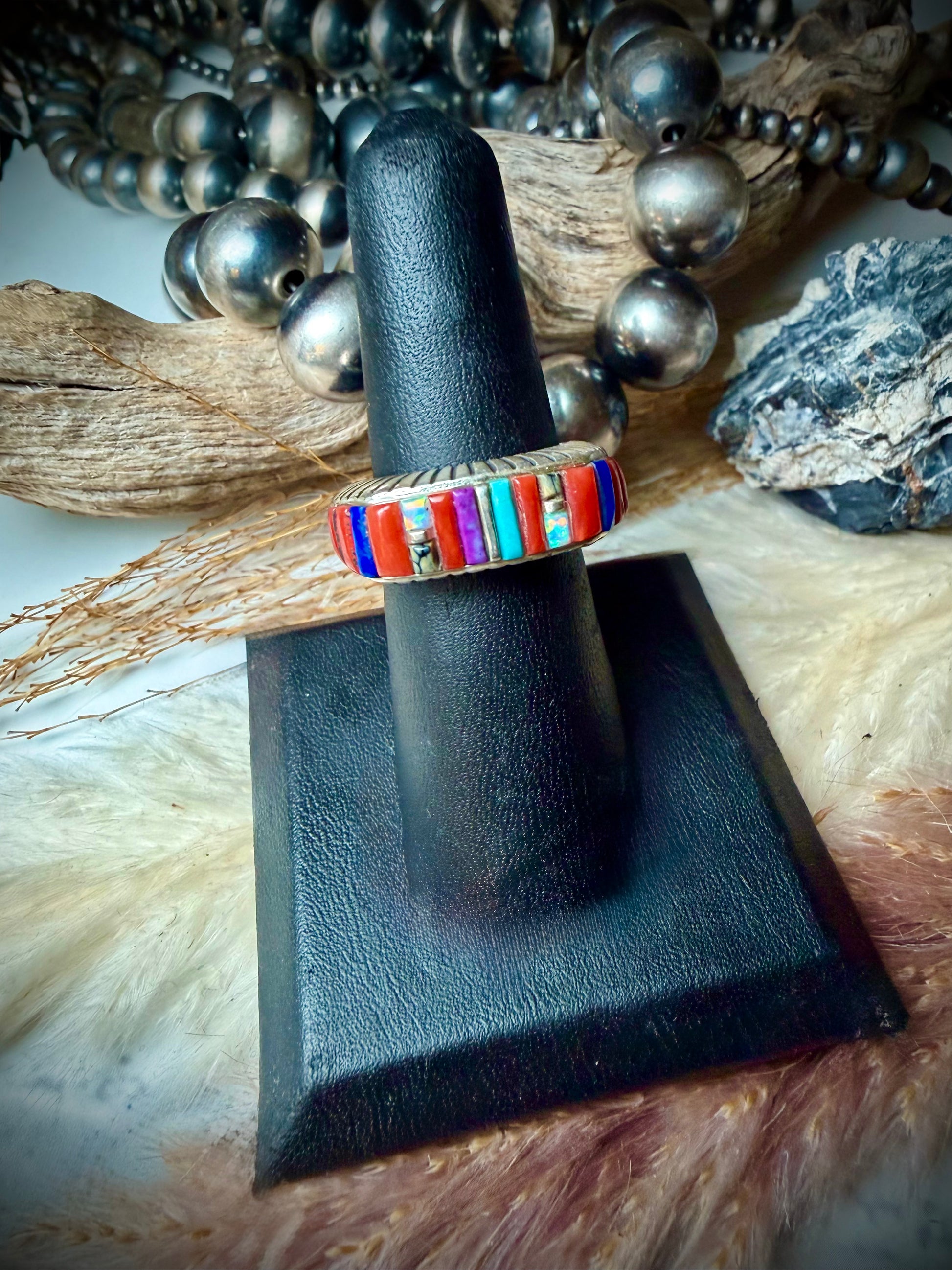 Red Coral, Turquoise, Opal, Lapis, White Buffalo, and Charoite.