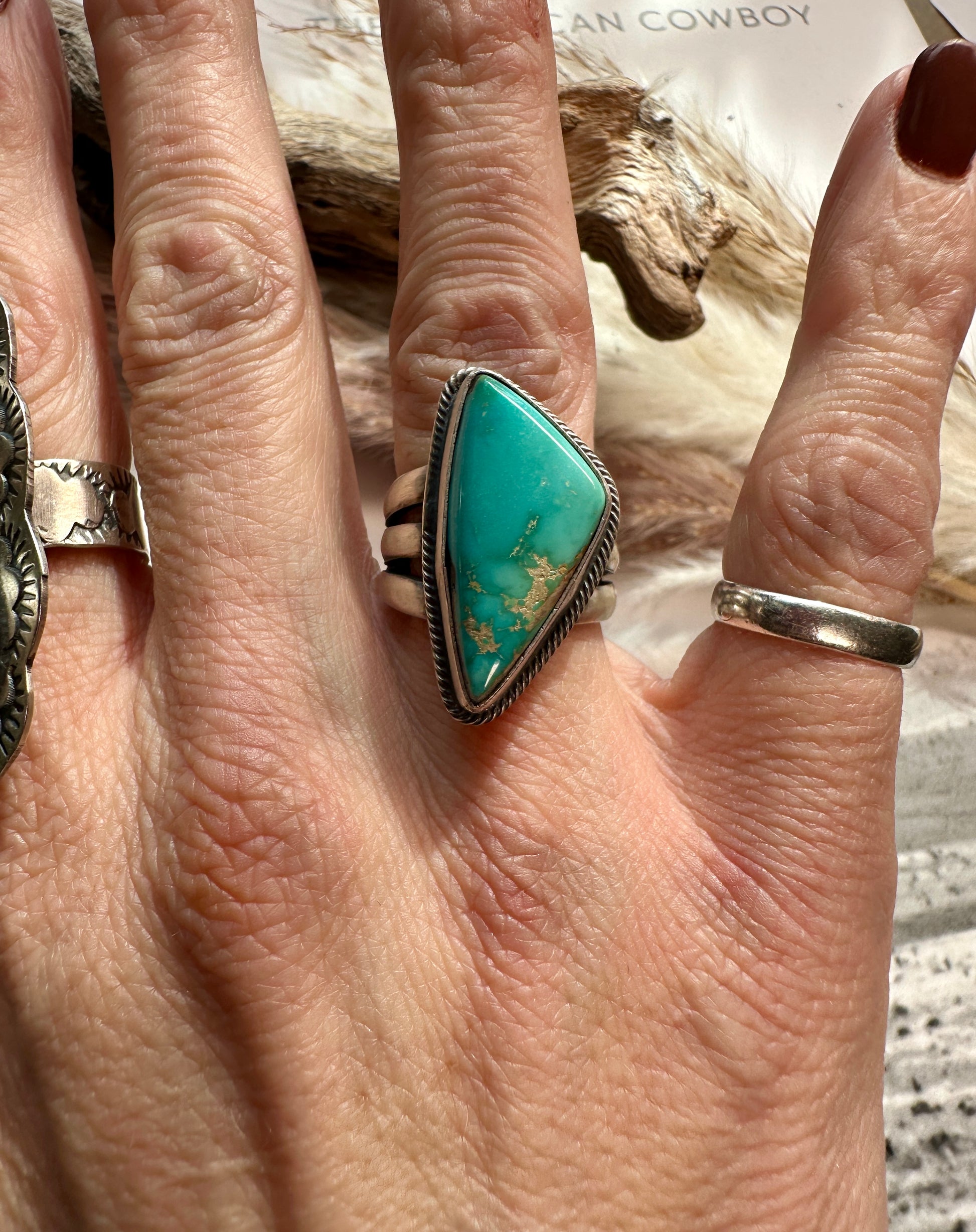 Sterling silver, Native made ring with thick band. Size 7.5