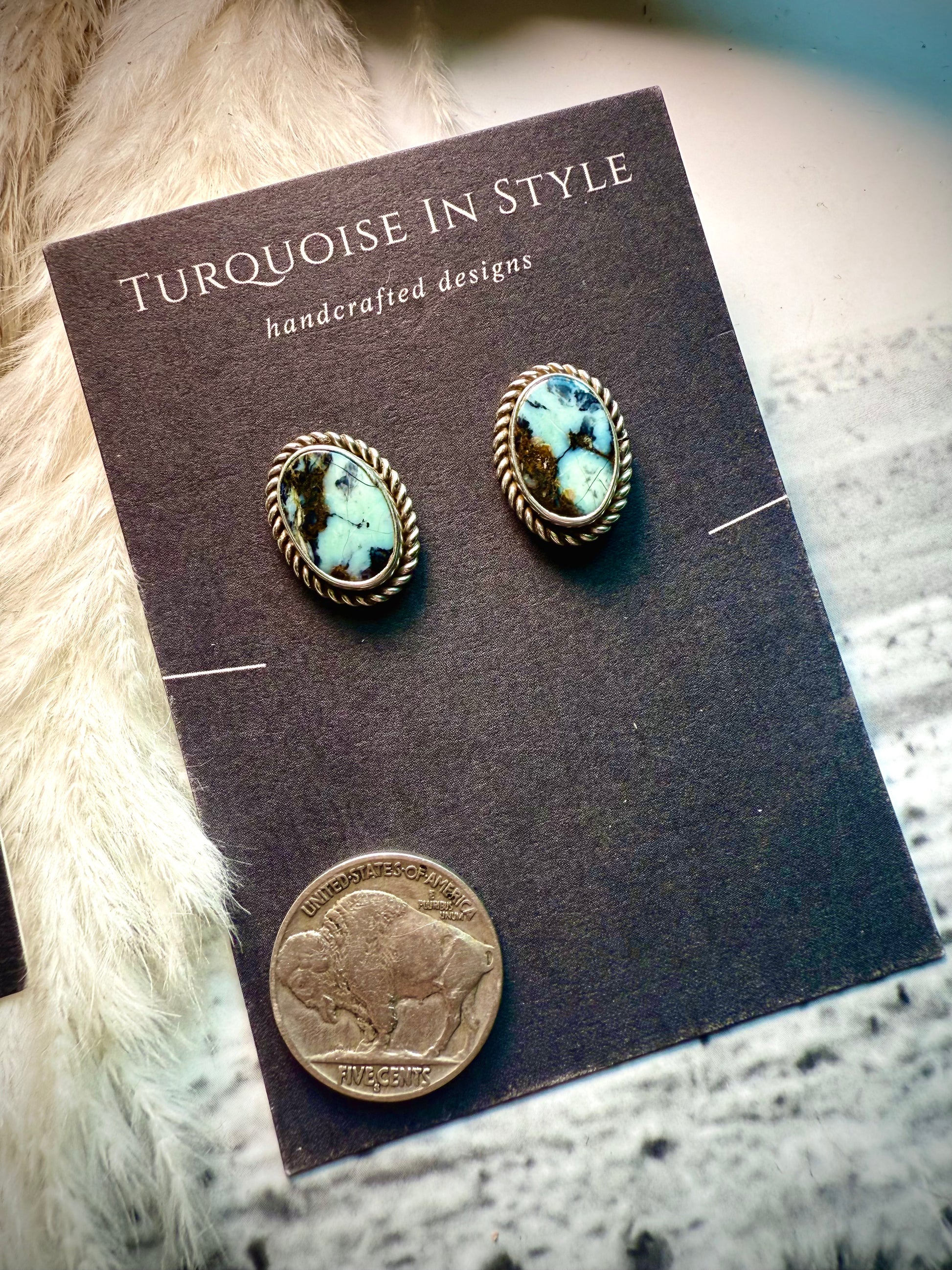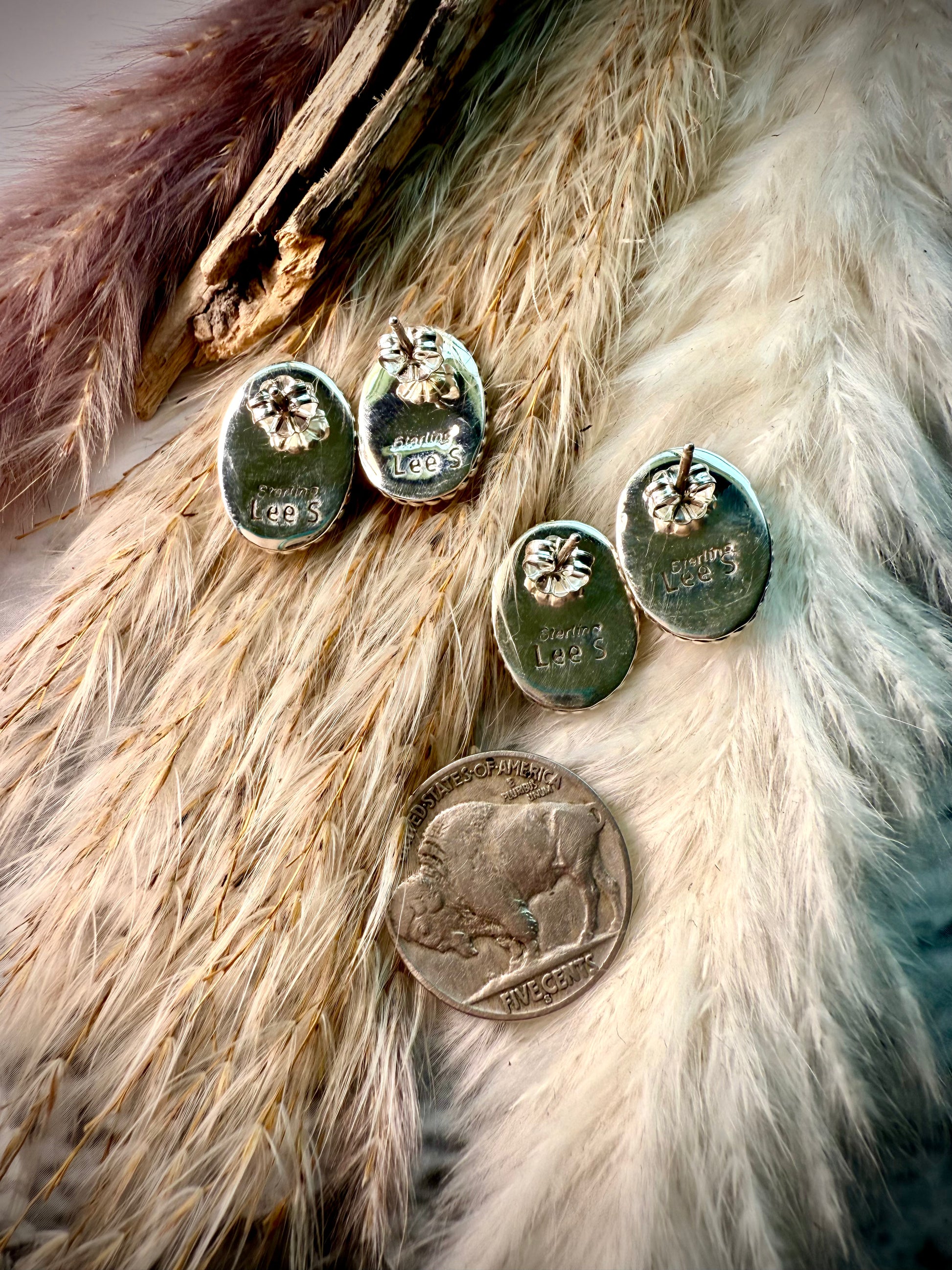 Handmade with genuine New Lander stones, these oval stud earrings feature a classic rope border in sterling silver and the artist stamp Lee S. Designed with a top post for secure, comfortable wear, each pair shows off the bold New Lander matrix that makes them truly one-of-a-kind.