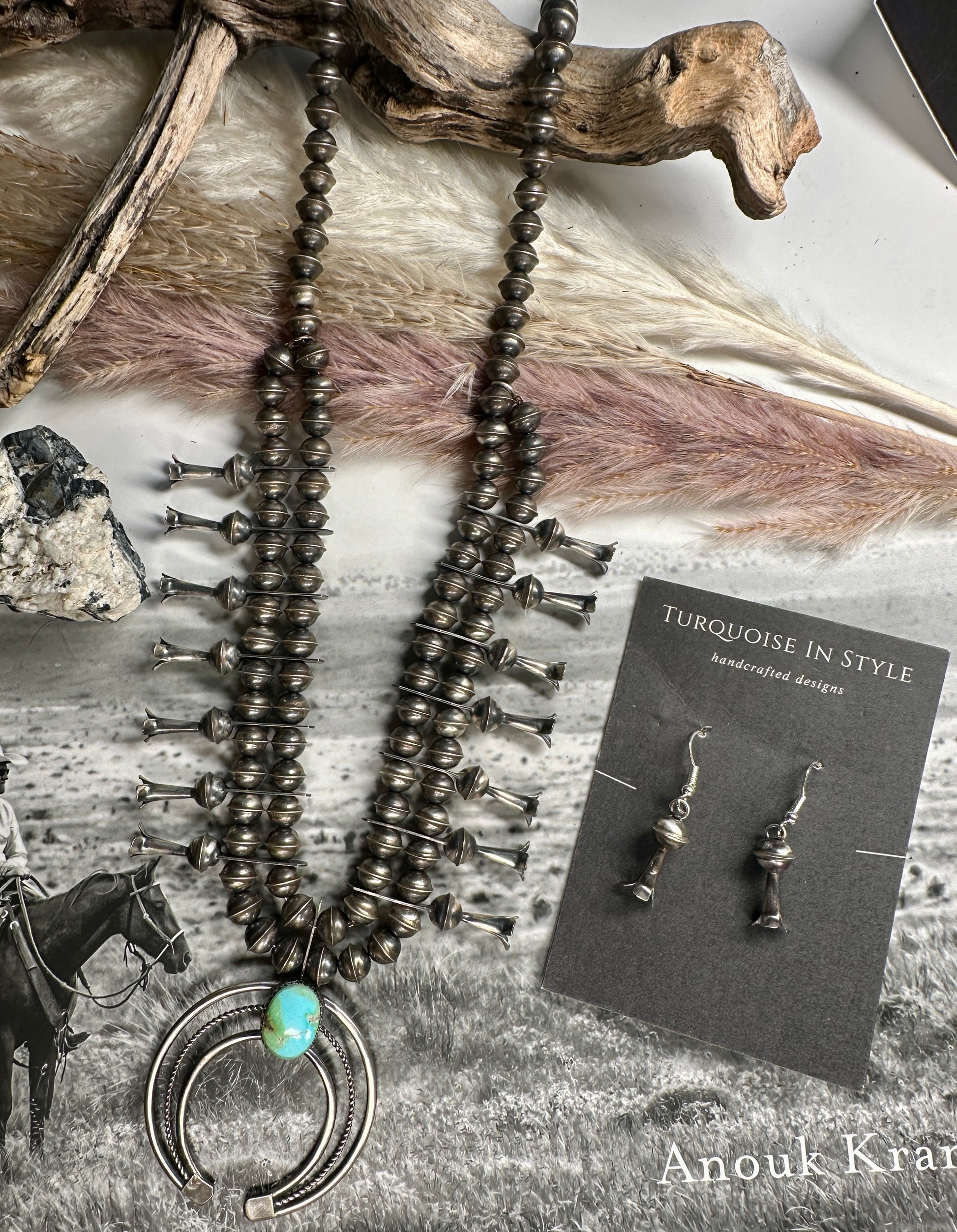 Native made with handmade saucer beads. Total length from end to end is 24", necklace measures 20". Pearls are 7.5mm