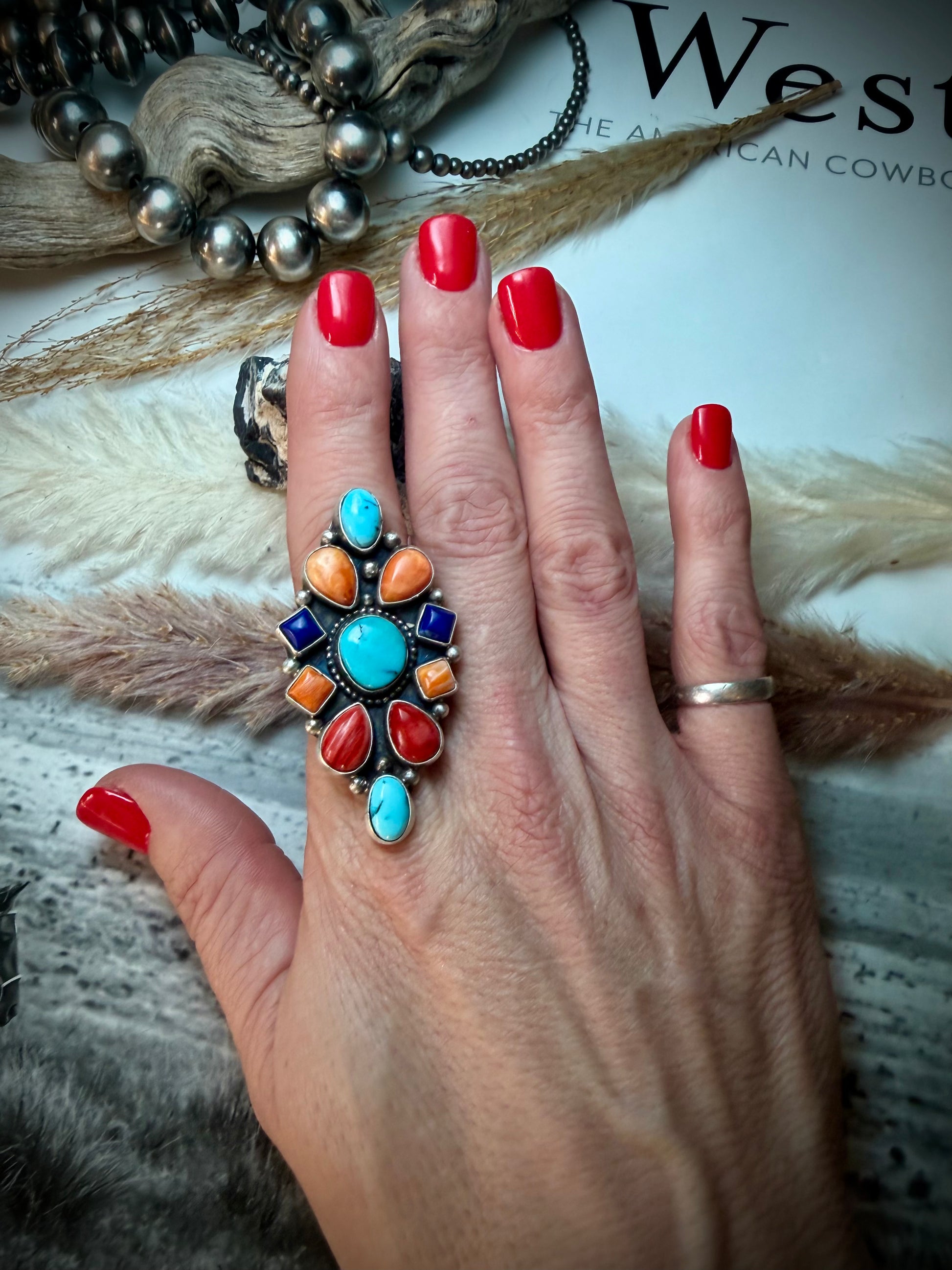 Spiny, Turquoise & Lapis Ring (Adjustable)