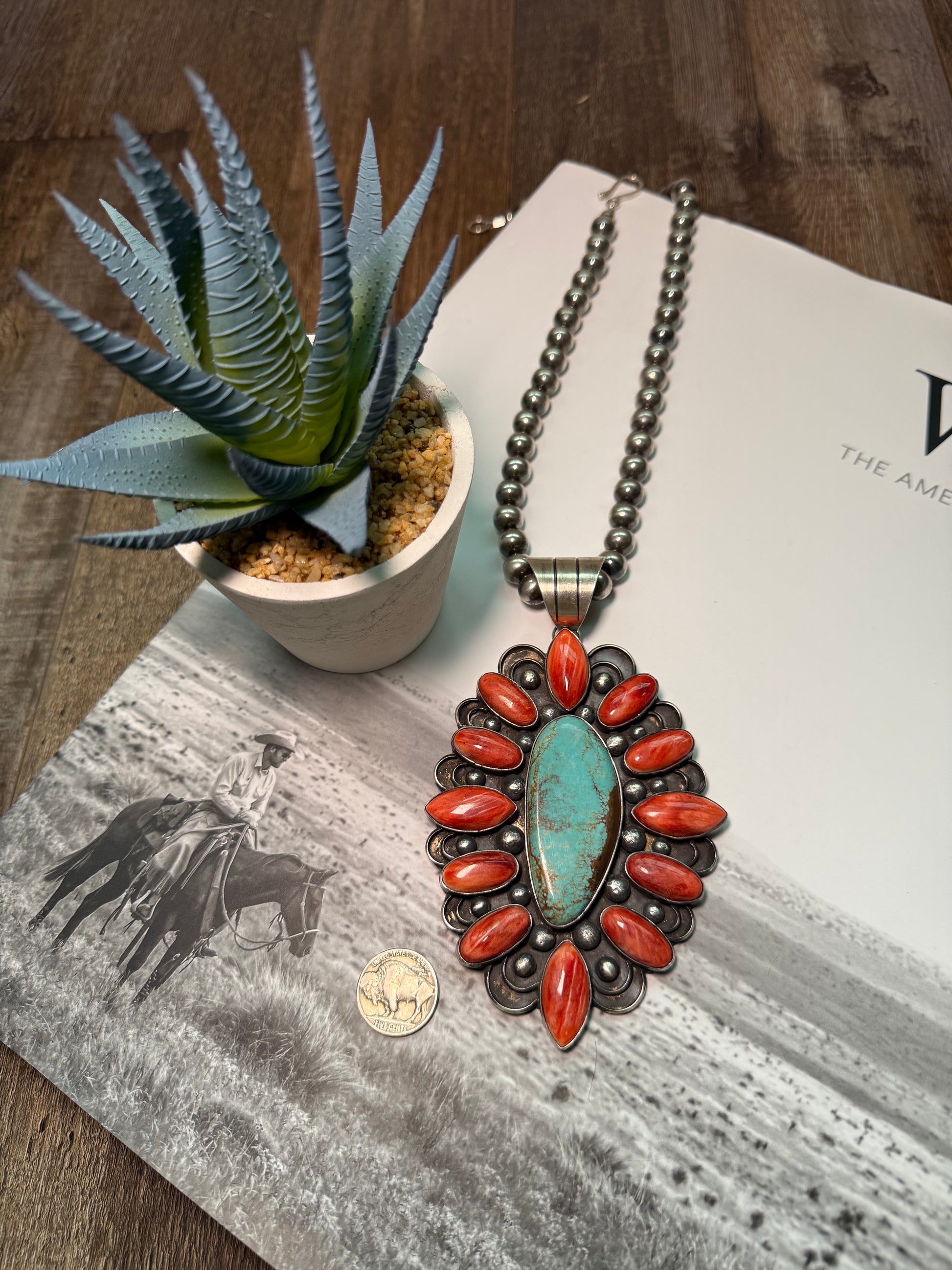 Massive Red Spiny & Mine #8 Pendant from the artists at Chimney Butte. Huge bale, will fit close to 19mm necklaces. Total length is 5 1/2" long.