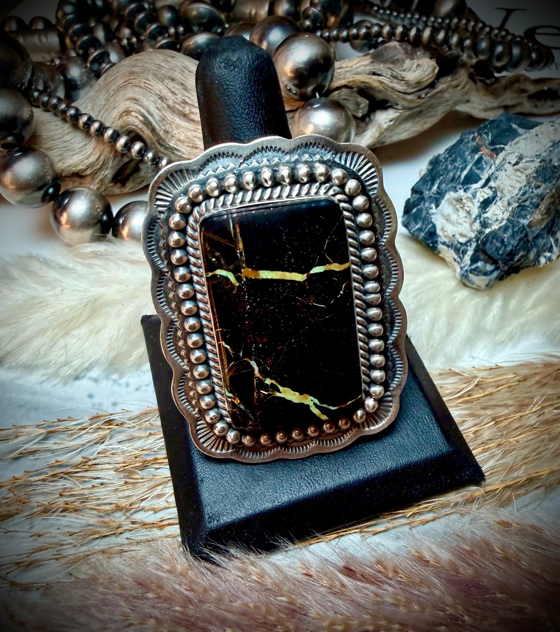 Stunning Rectangle Blackjack Ring by Gilbert Platero (Adjustable)