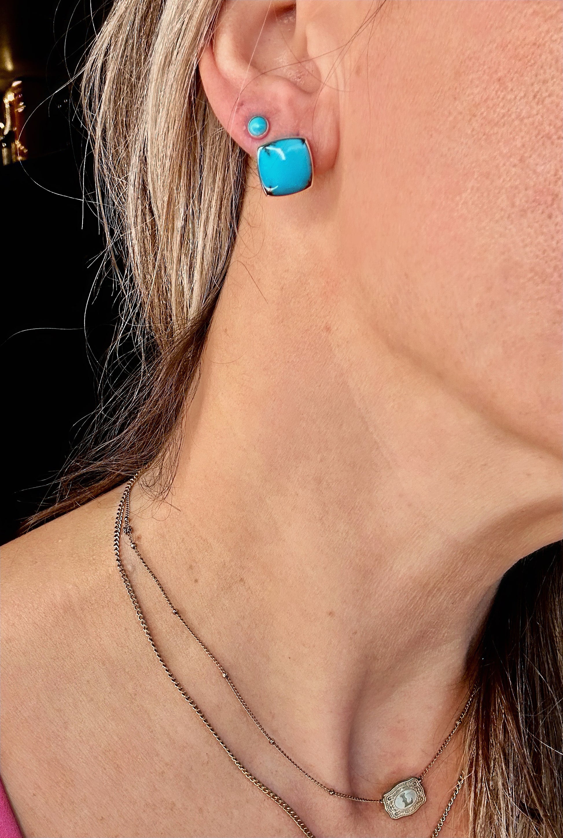 Sterling silver, Native made prince studs. The post is located in the top corner, so they hang like a diamond! Stamped EA.