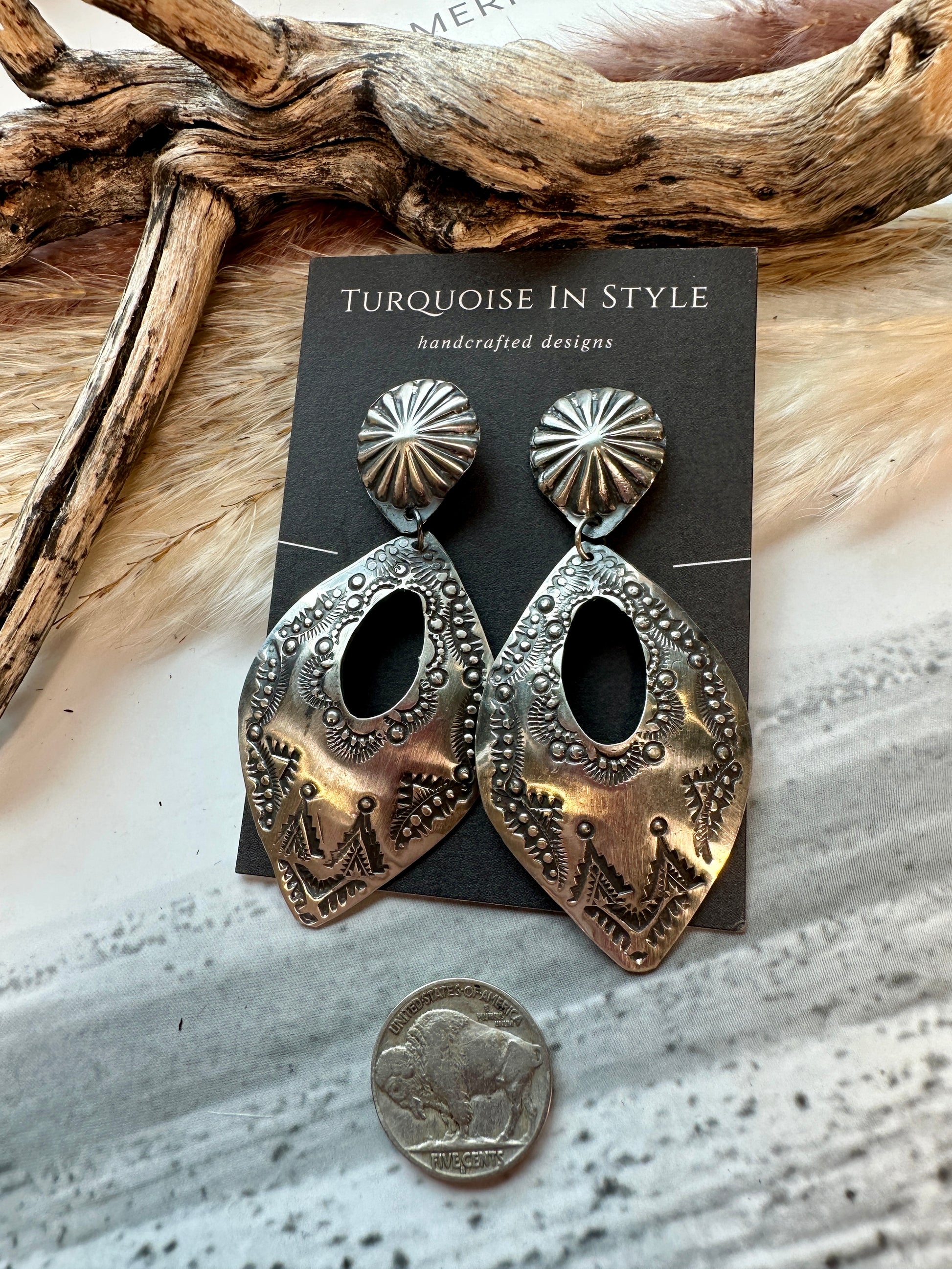 Sterling silver earrings by Vincent Platero. Lightweight, measuring just under 3" long.