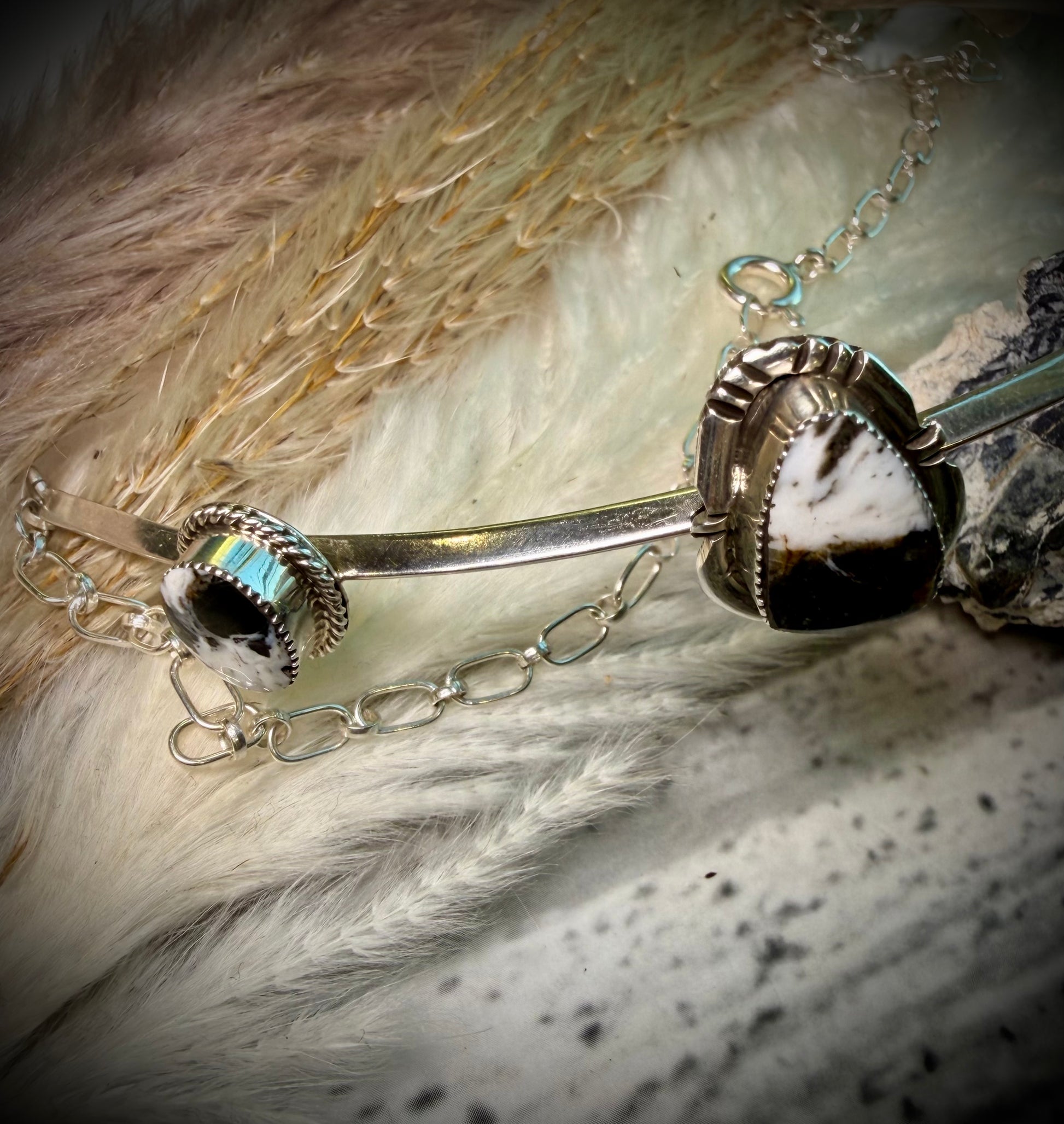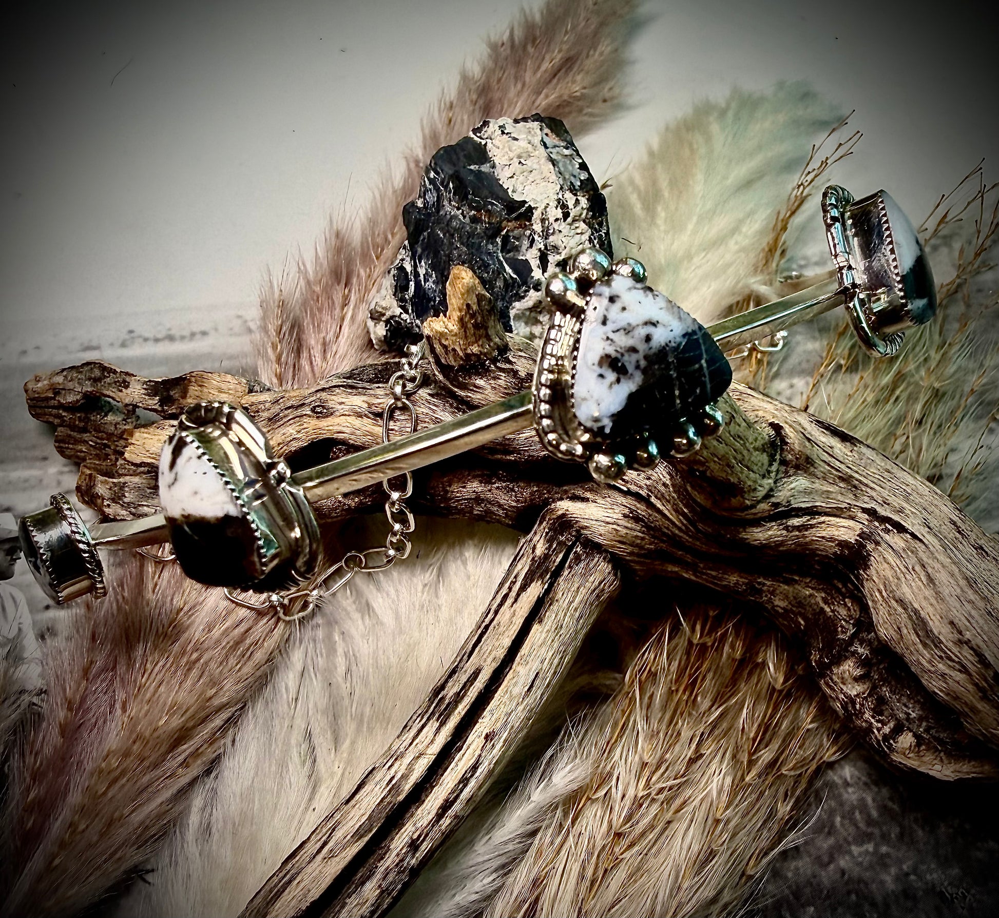 Five bold White Buffalo stones with striking black and white matrix