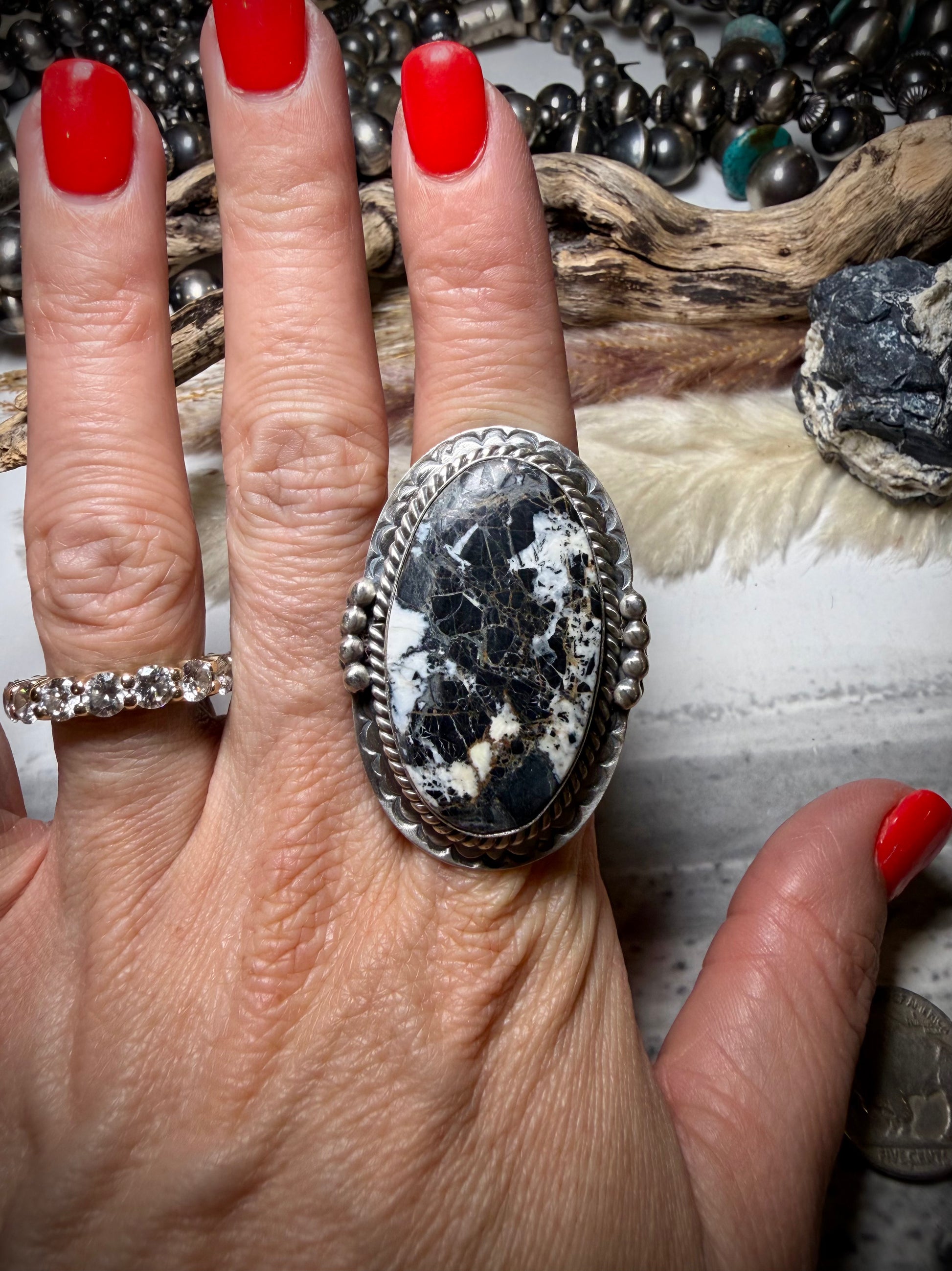 Adjustable White Buffalo Ring